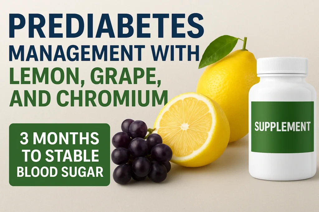 A randomized clinical trial found that a citrus-grape-hesperidin-chromium supplement improved fasting glucose in 3 months and significantly enhanced lipid profiles in prediabetic adults over 6 months.